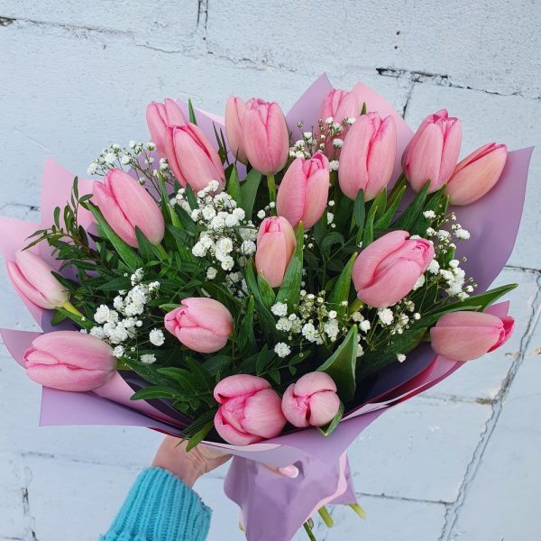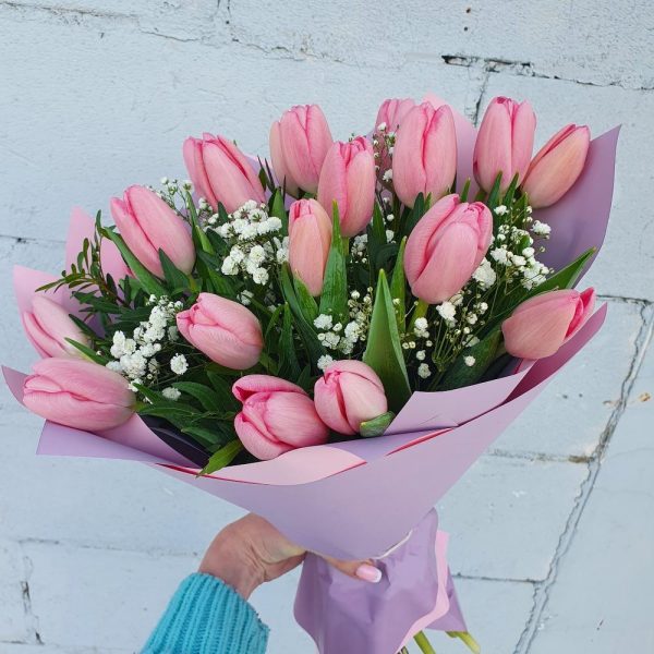 Букет с розовыми тюльпанами "Пудровое утро" в Кумертау